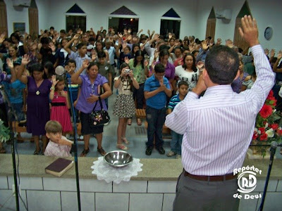 À noite os fiéis compareceram na expectativa de receberem as bênçãos preparadas por Deus através dos louvores, e pregação do Palavra de Deus. Foi portador da mensagem o Pr. Dirceu Macedo, da Assembléia de Deus local, que veio acompanhado de muitos irmãos e do Grupo Adonai, o qual participou do momento de louvor transportando toda a igreja a momentos de emoção, como fez também o Ministério Brasas do Altar, da igreja local.